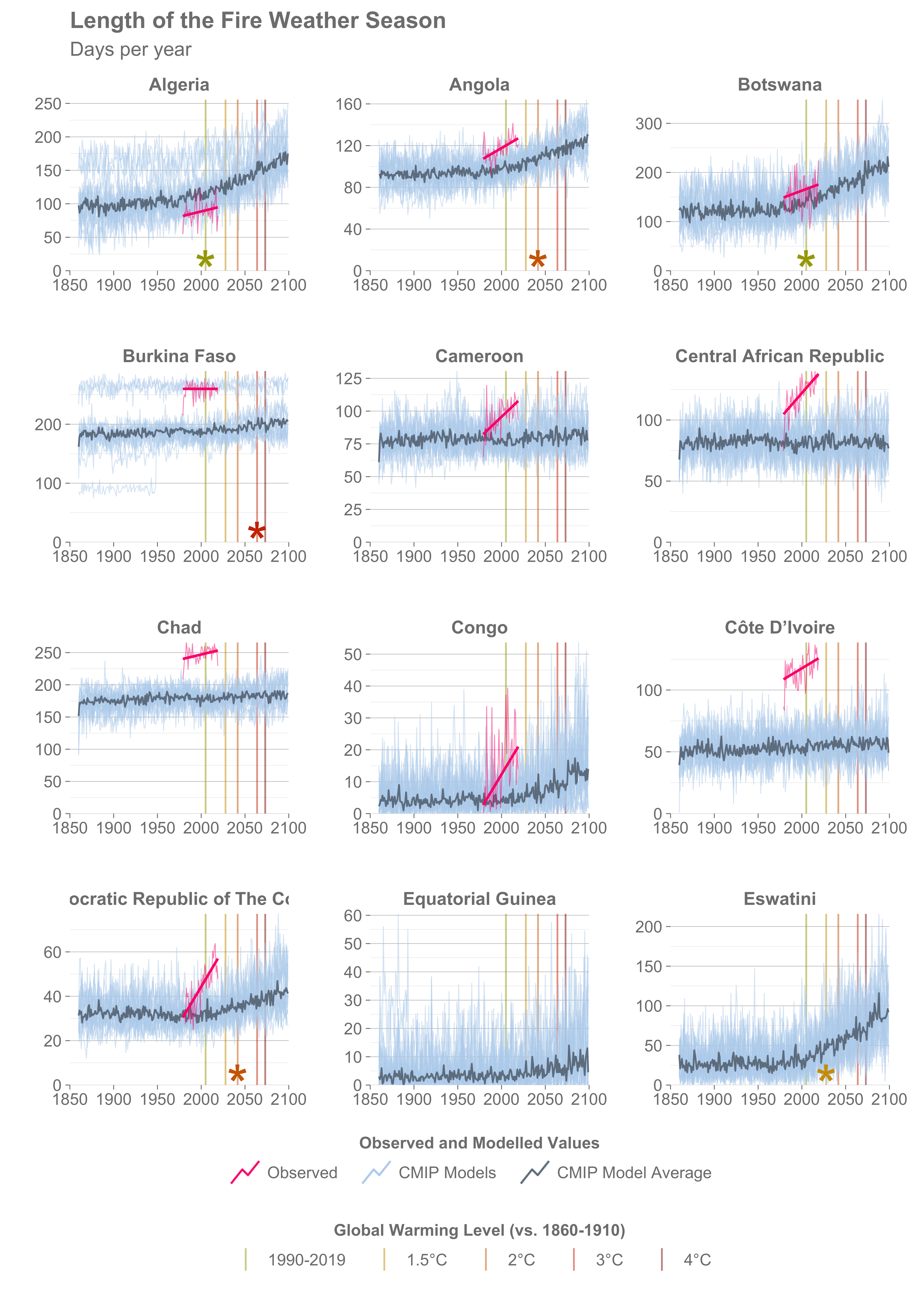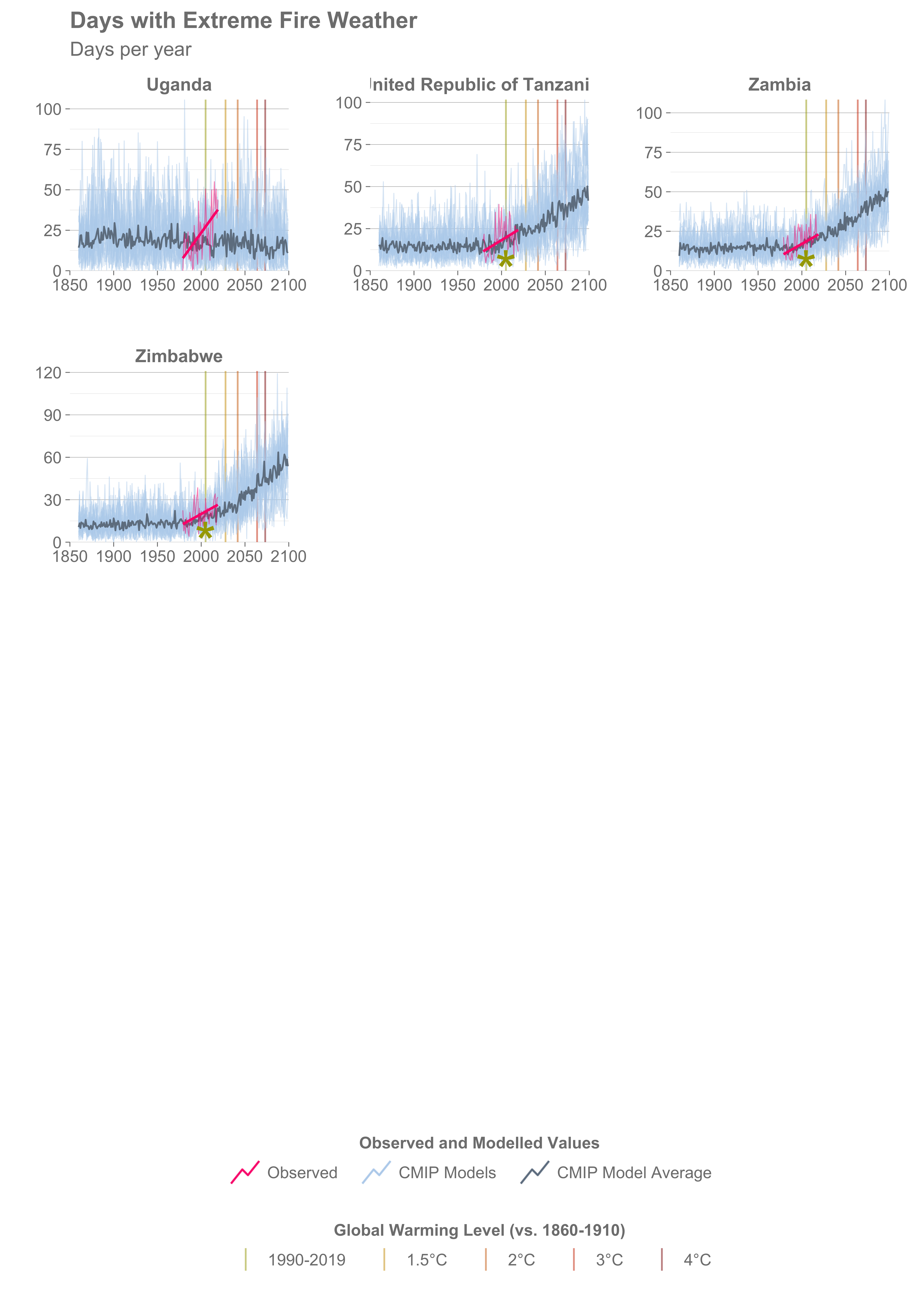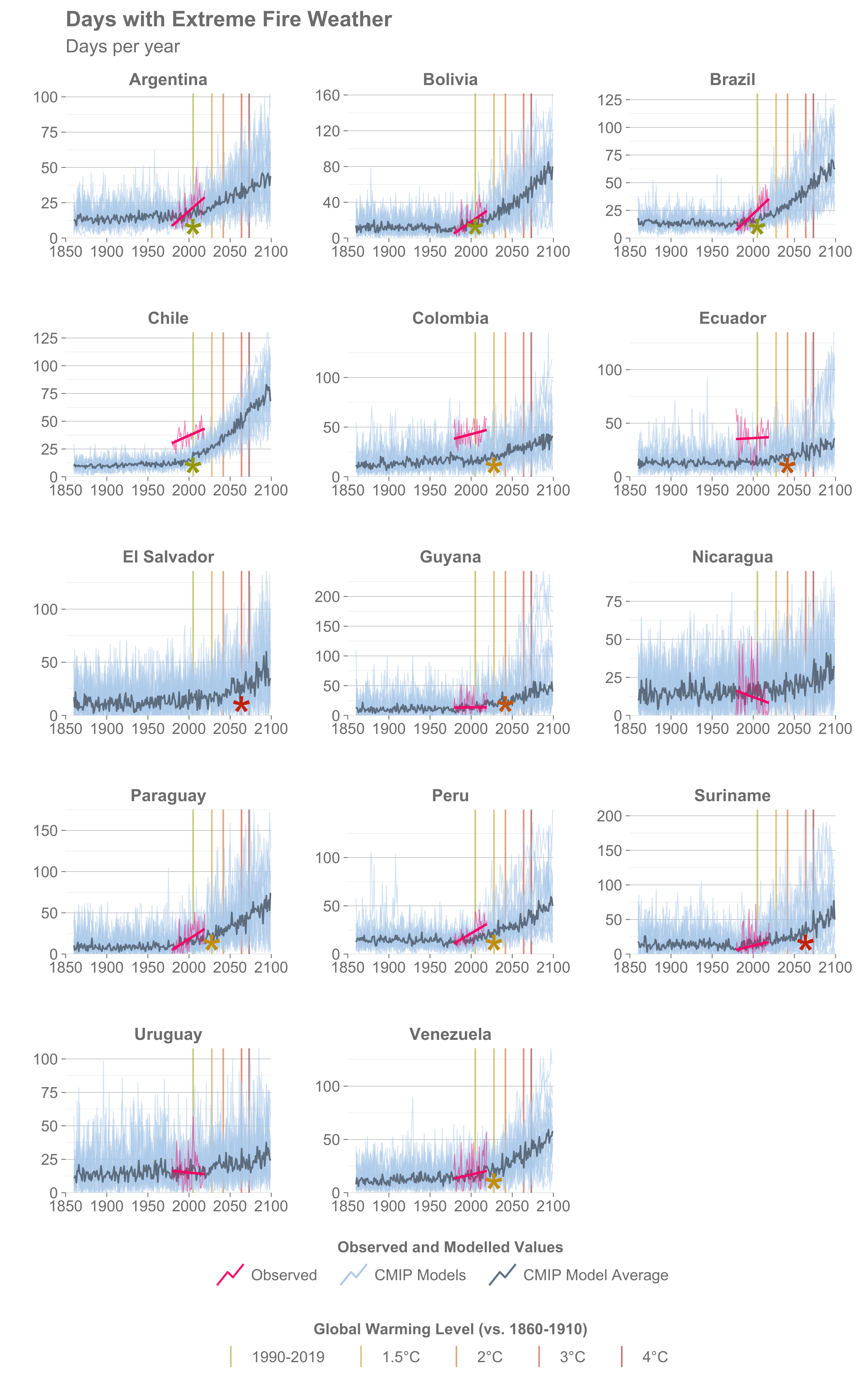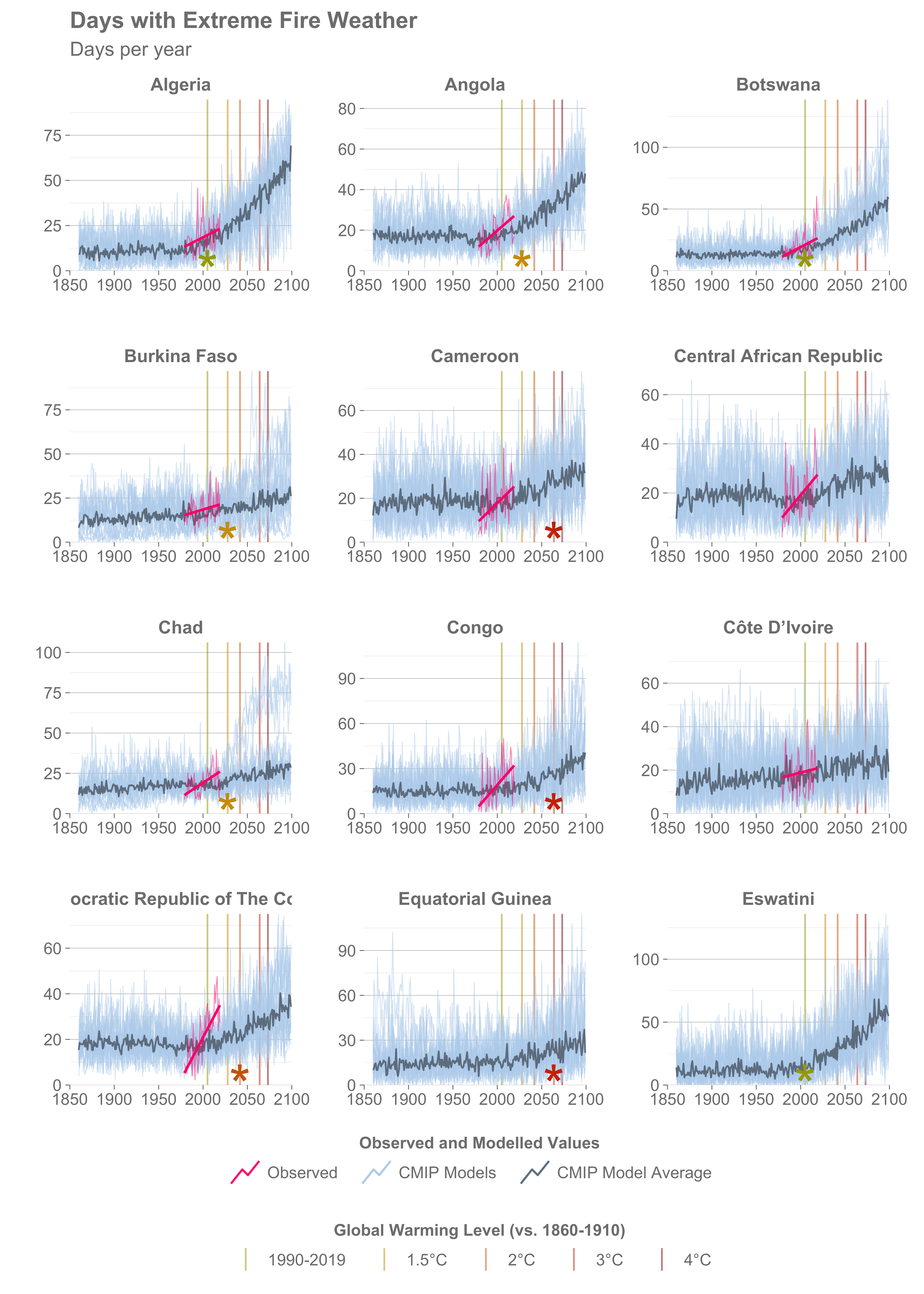 Plots of changing fire weather are provided in the Country-Level Figures section below. Skip to your region: