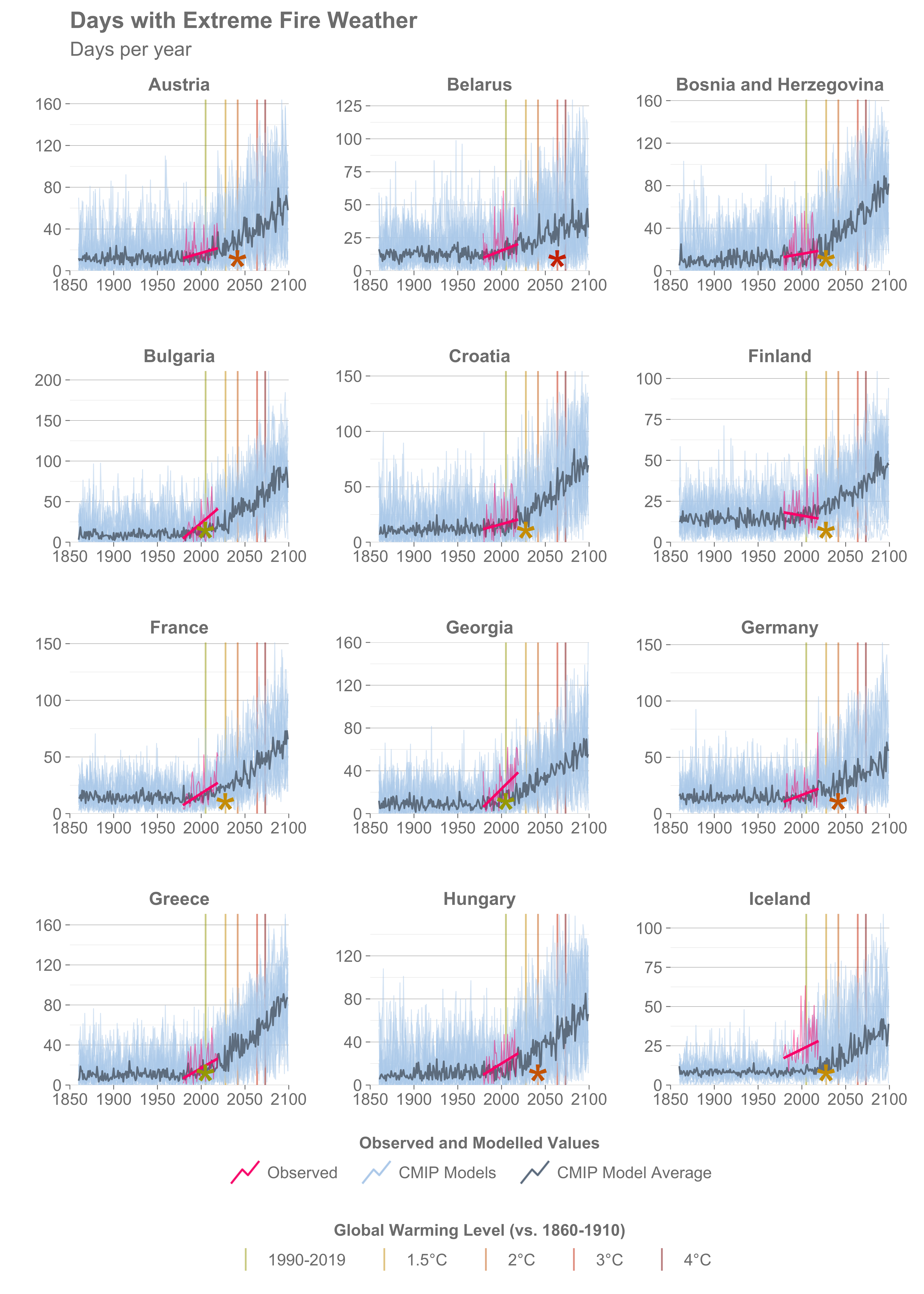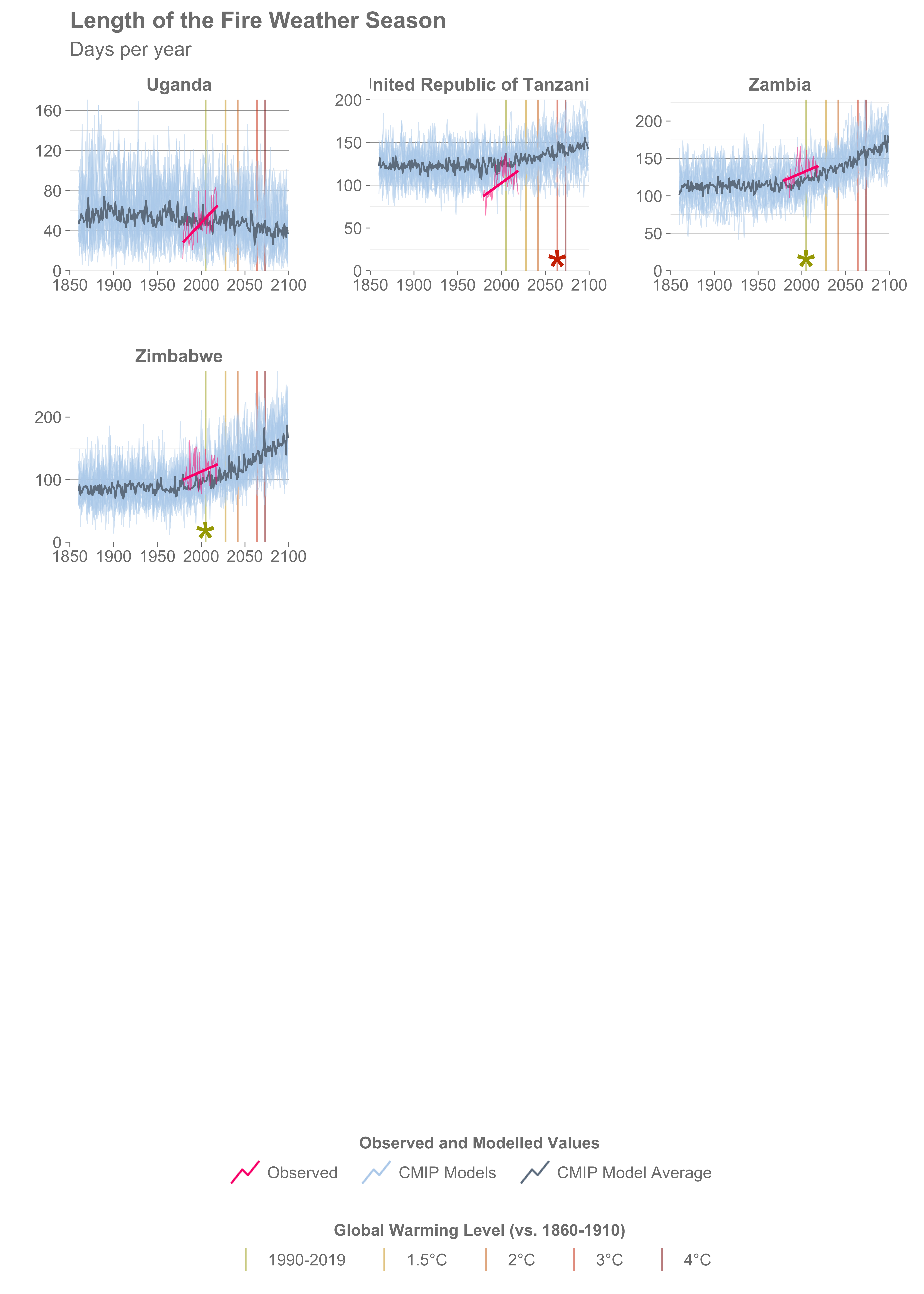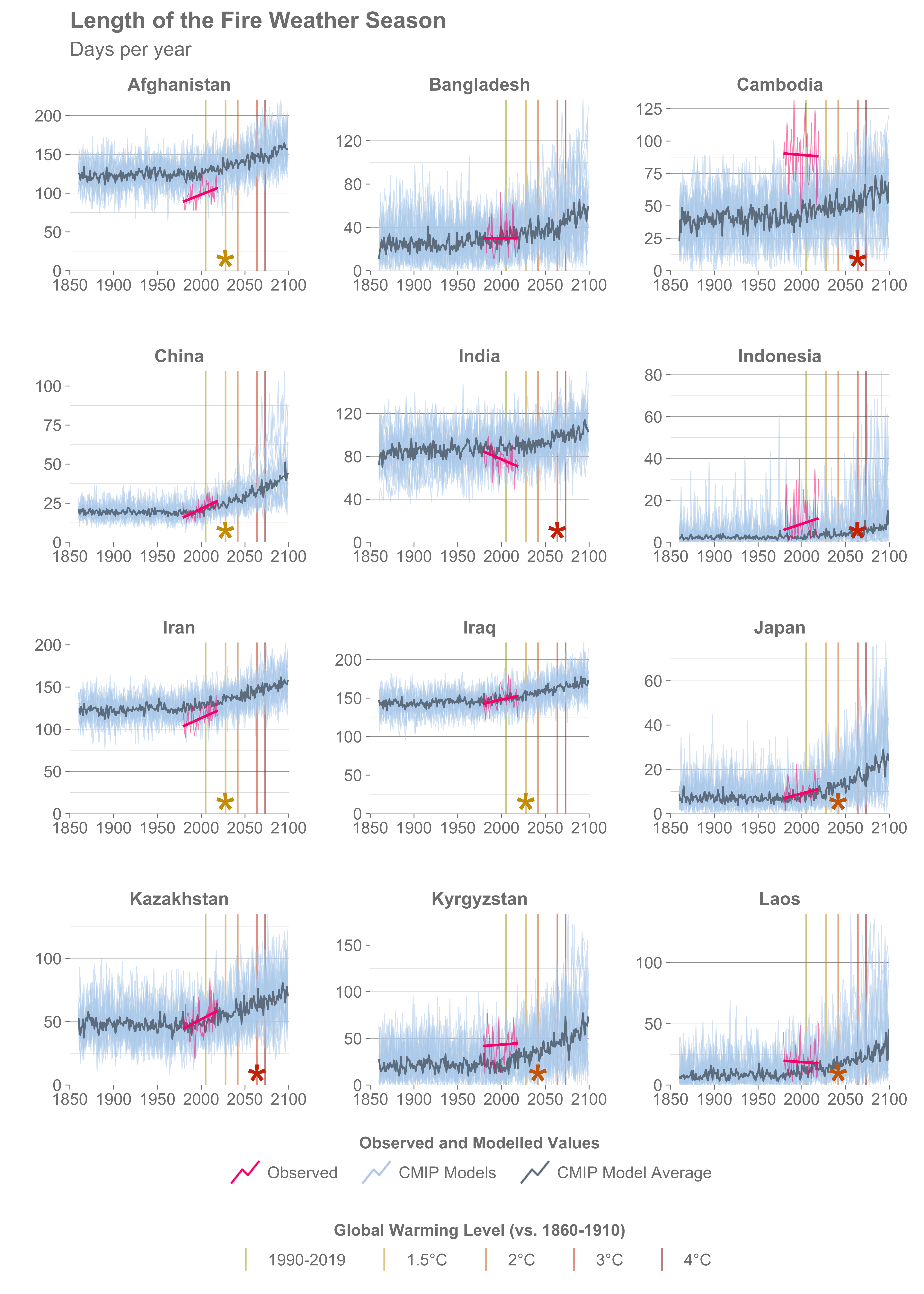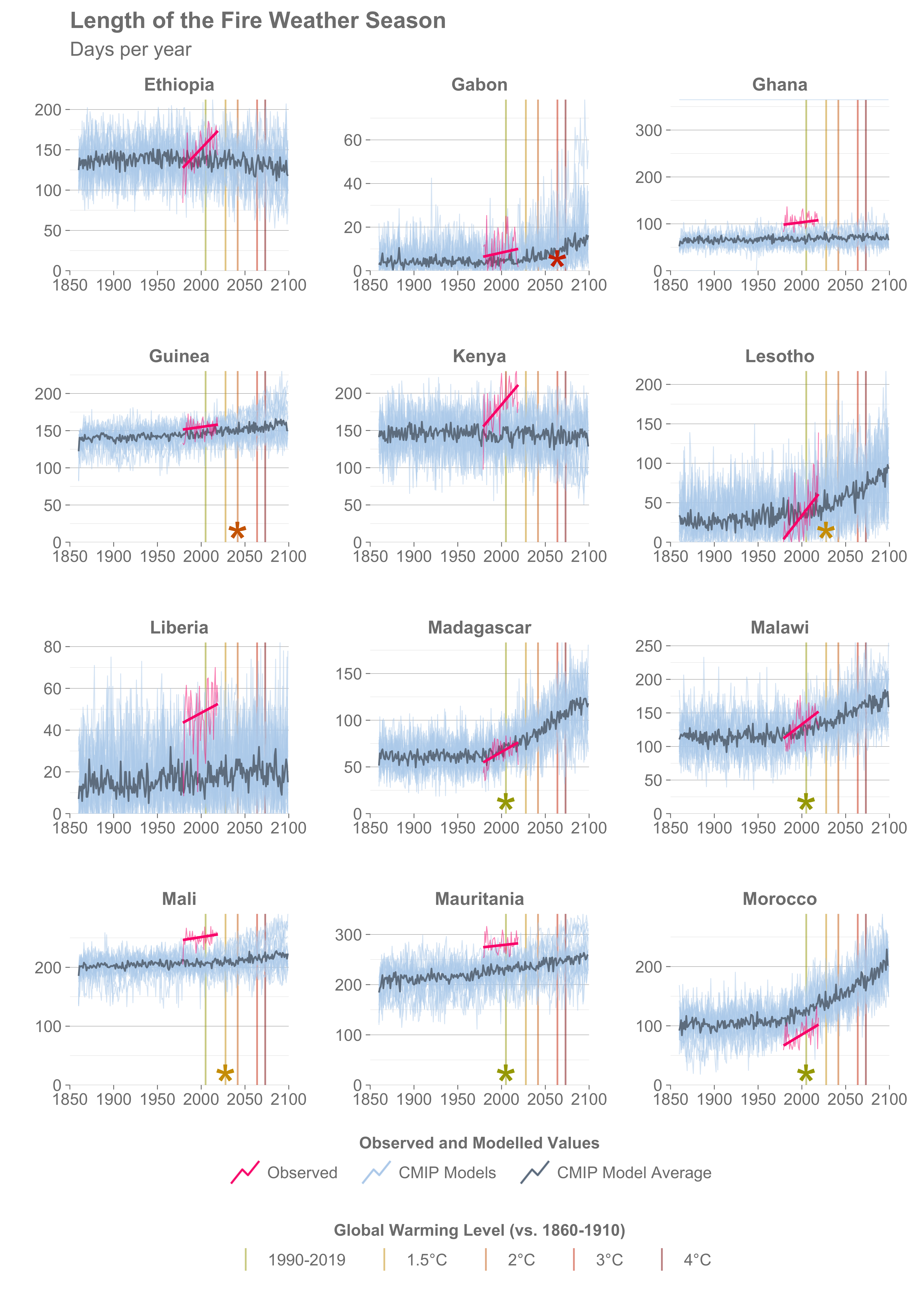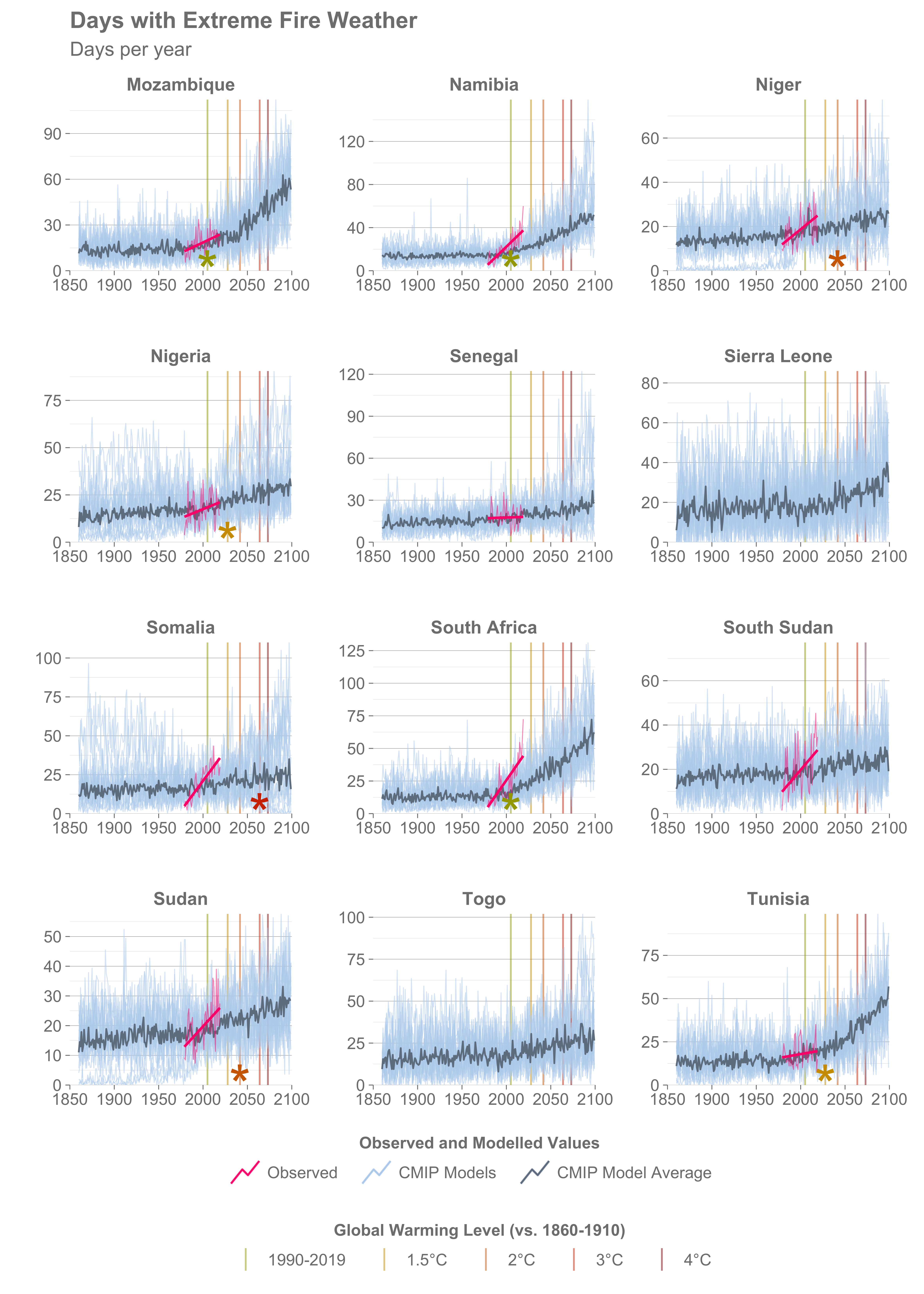 Plots of changing fire weather are provided in the Country-Level Figures section below. Skip to your region: