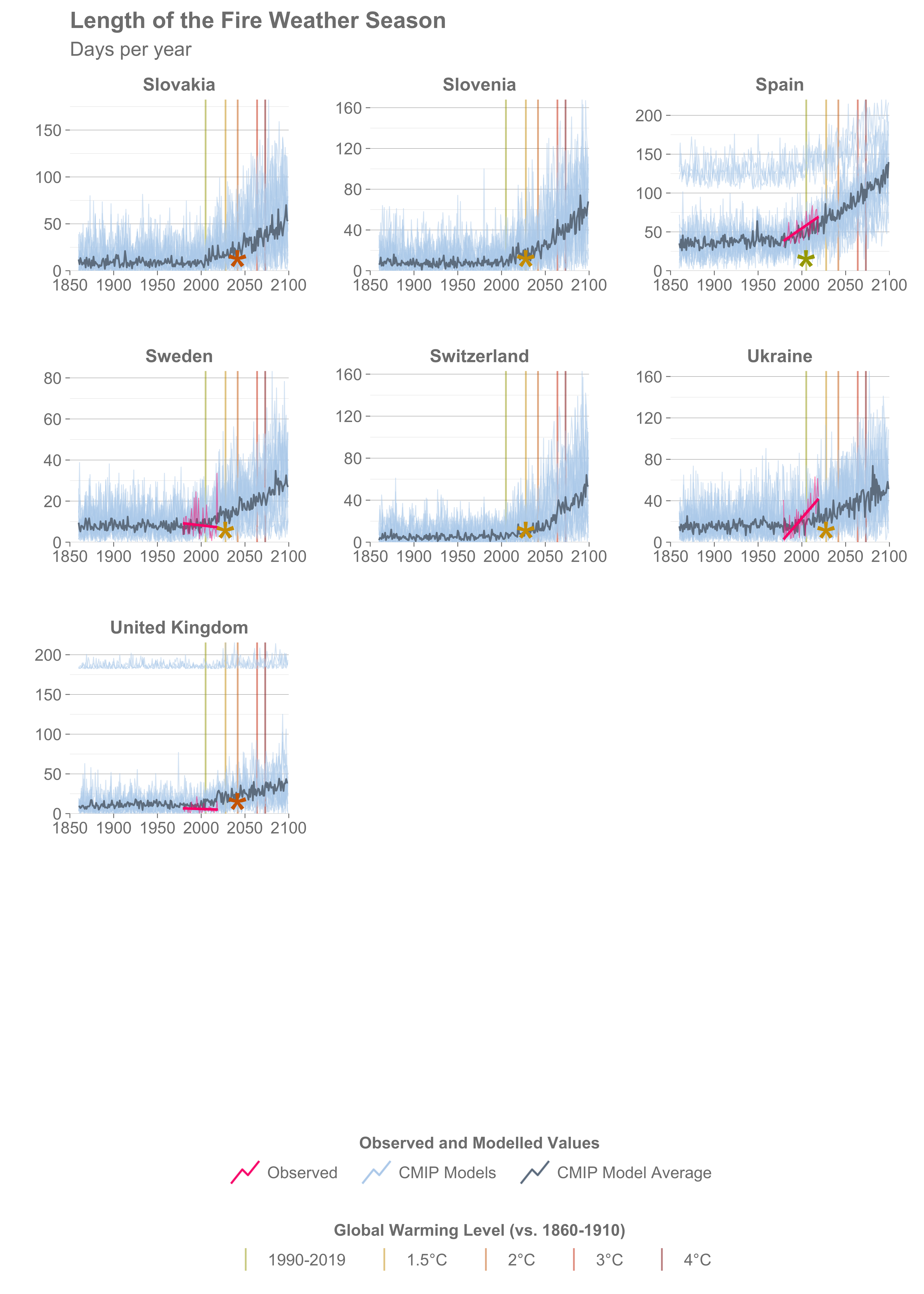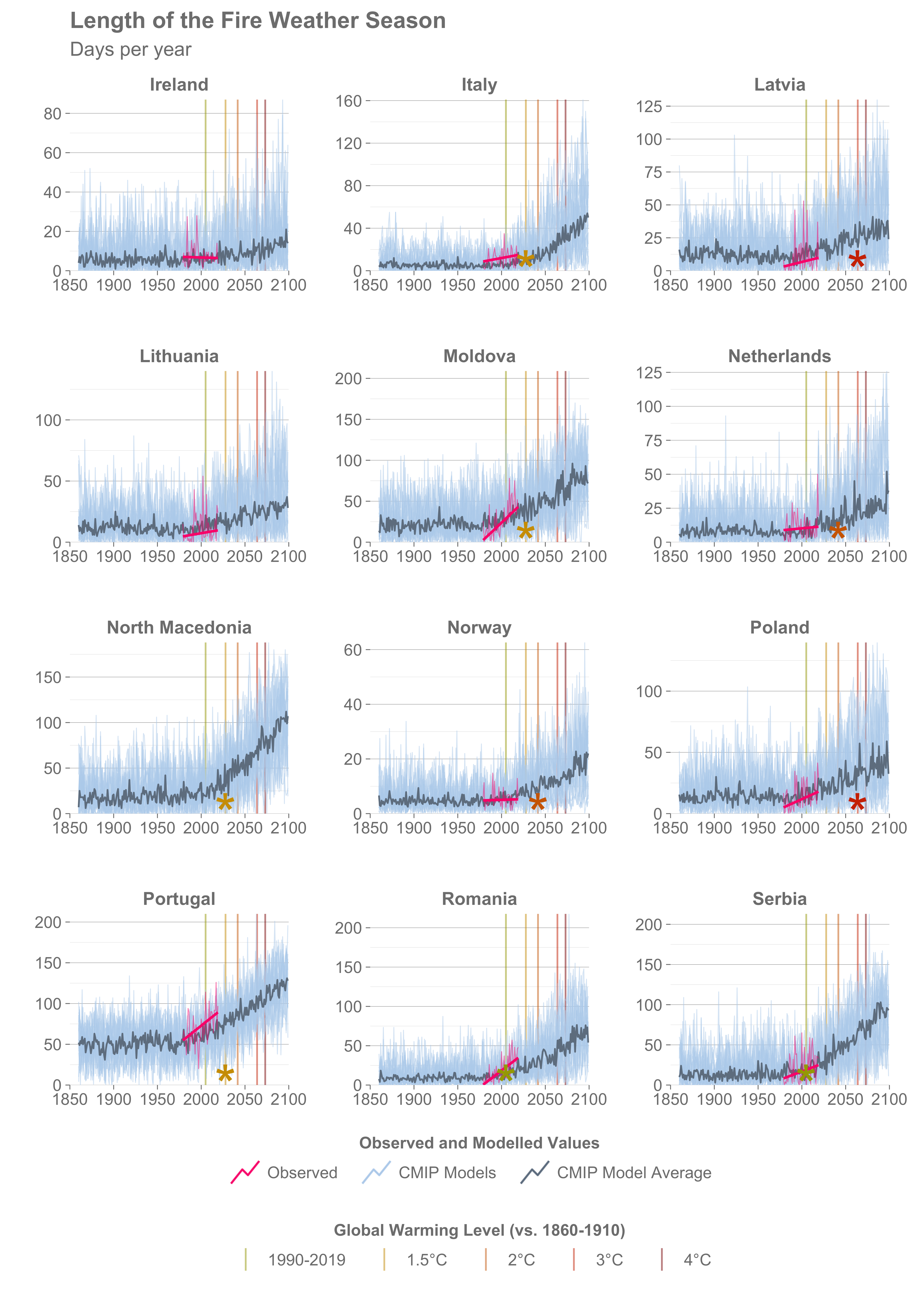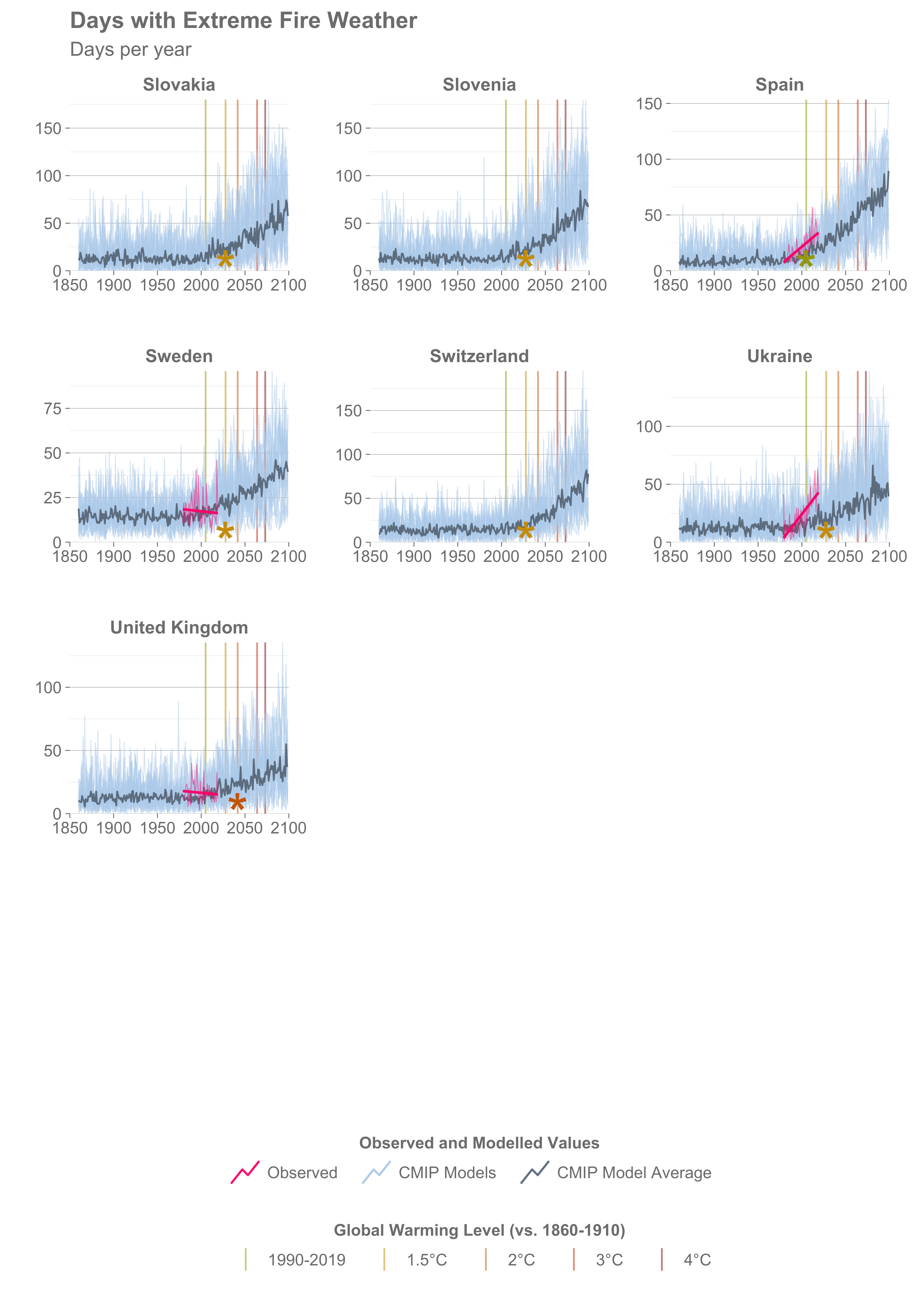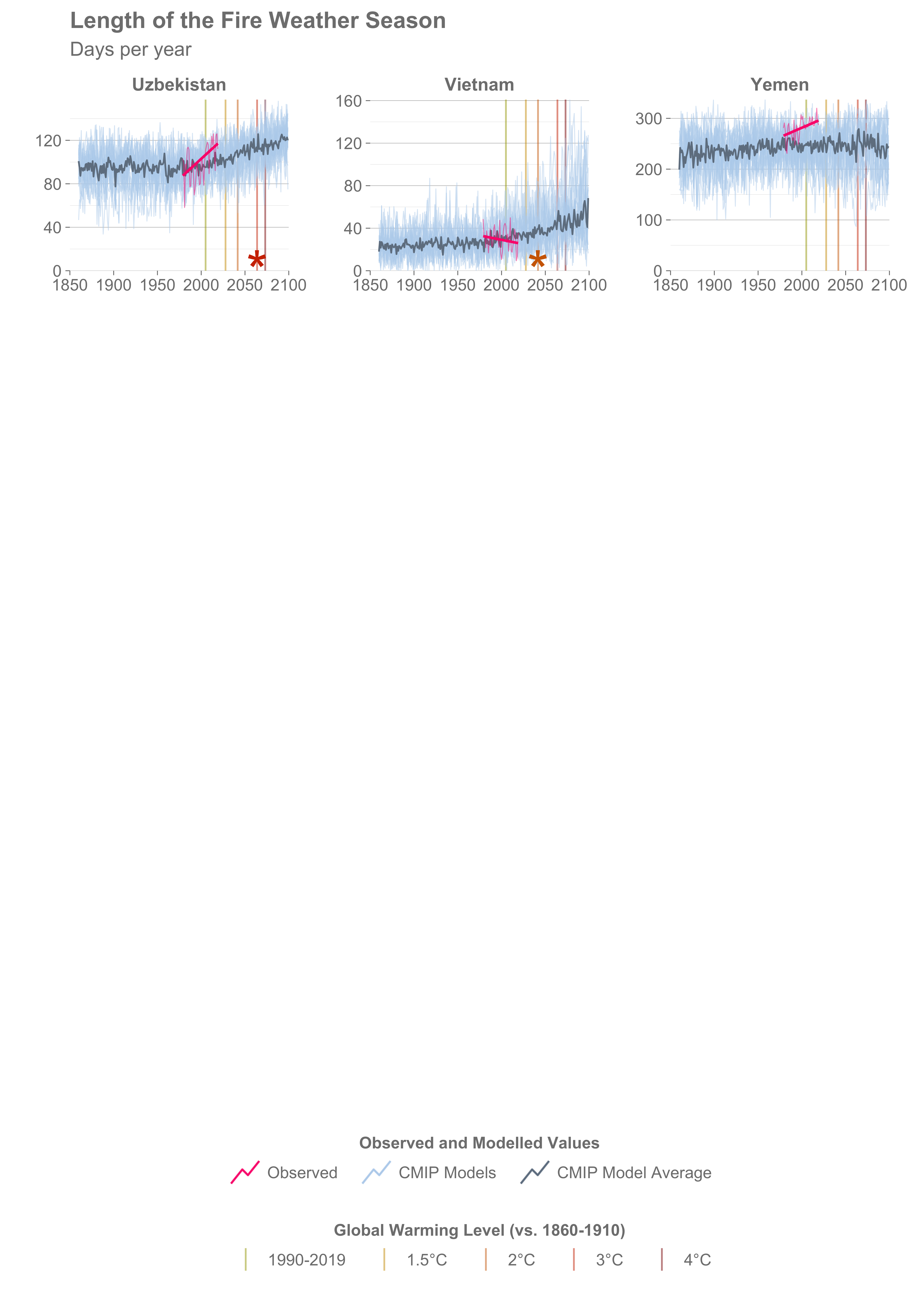 Plots of changing fire weather are provided in the Country-Level Figures section below. Skip to your region:
